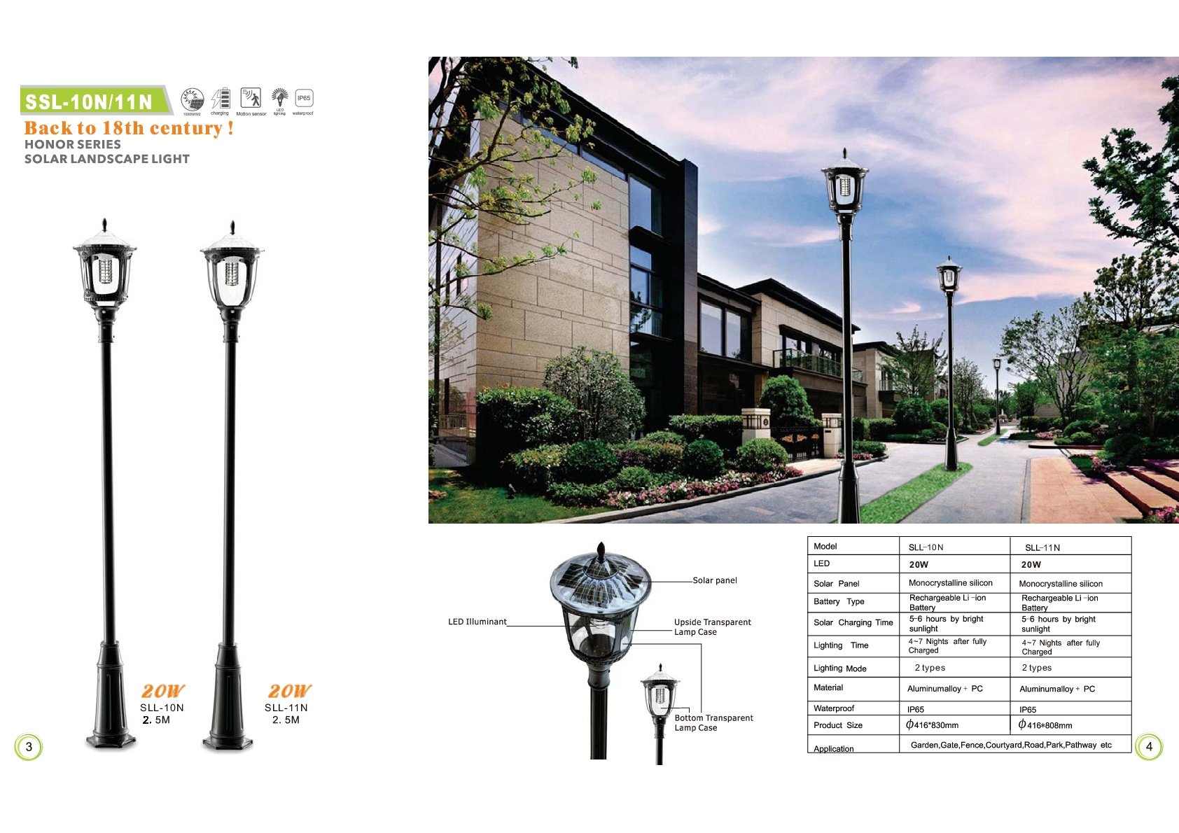太陽光で蓄電して、暗い場所をカメラ付き街灯として明るく照らします。